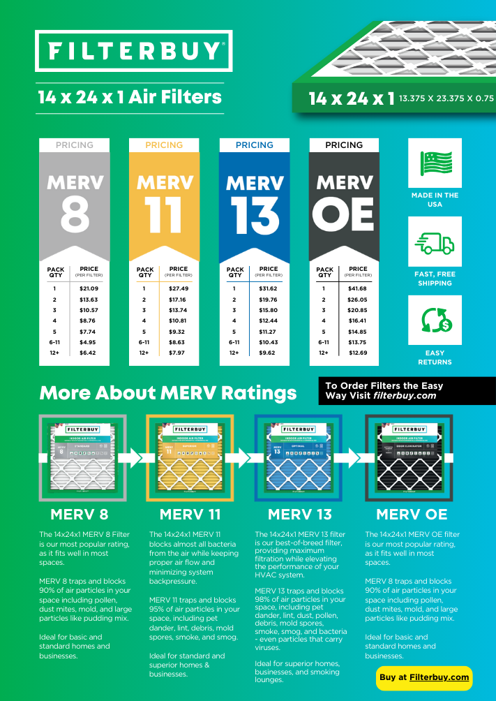 Shop Filterbuy's 14x24x1 Odor Eliminator filters at Filterbuy.com for fast shipping and consistent availability in this exact size.
