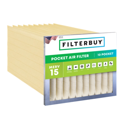 Bag-style pocket filters offering high dust-holding capacity and low pressure drop for large commercial systems.