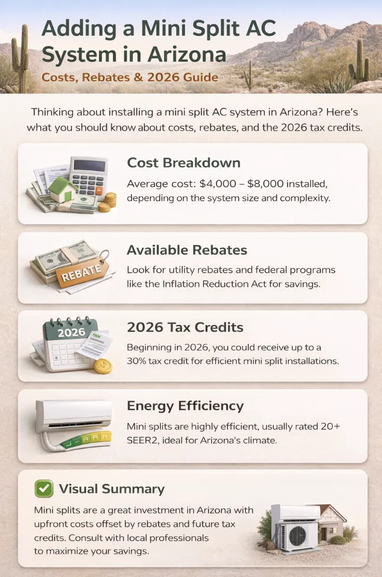 The 2026 rebate window is real and, in some cases, genuinely substantial. Inverter-driven mini split technology has reached a level of reliability in Arizona's extreme heat conditions that it simply did not have five years ago, and the financial programs available right now are designed to reward homeowners who move while the funding is active.