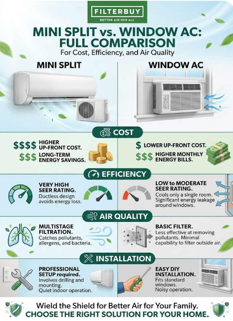 For all your air quality needs, including filters that help optimize the performance of your mini split or window AC units, check outFilterbuy. With a wide selection of high-quality filters available, you can ensure your system runs efficiently and delivers the clean air you deserve.