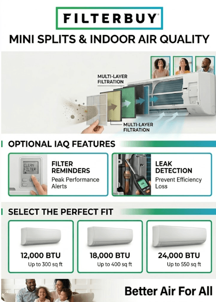 If you want to upgrade your home's cooling and filtration in one step, selecting the right equipment is vital. A high-quality option like a Filterbuy Mini Split provides a multi-layer healthy filtration system designed to protect your family's health.