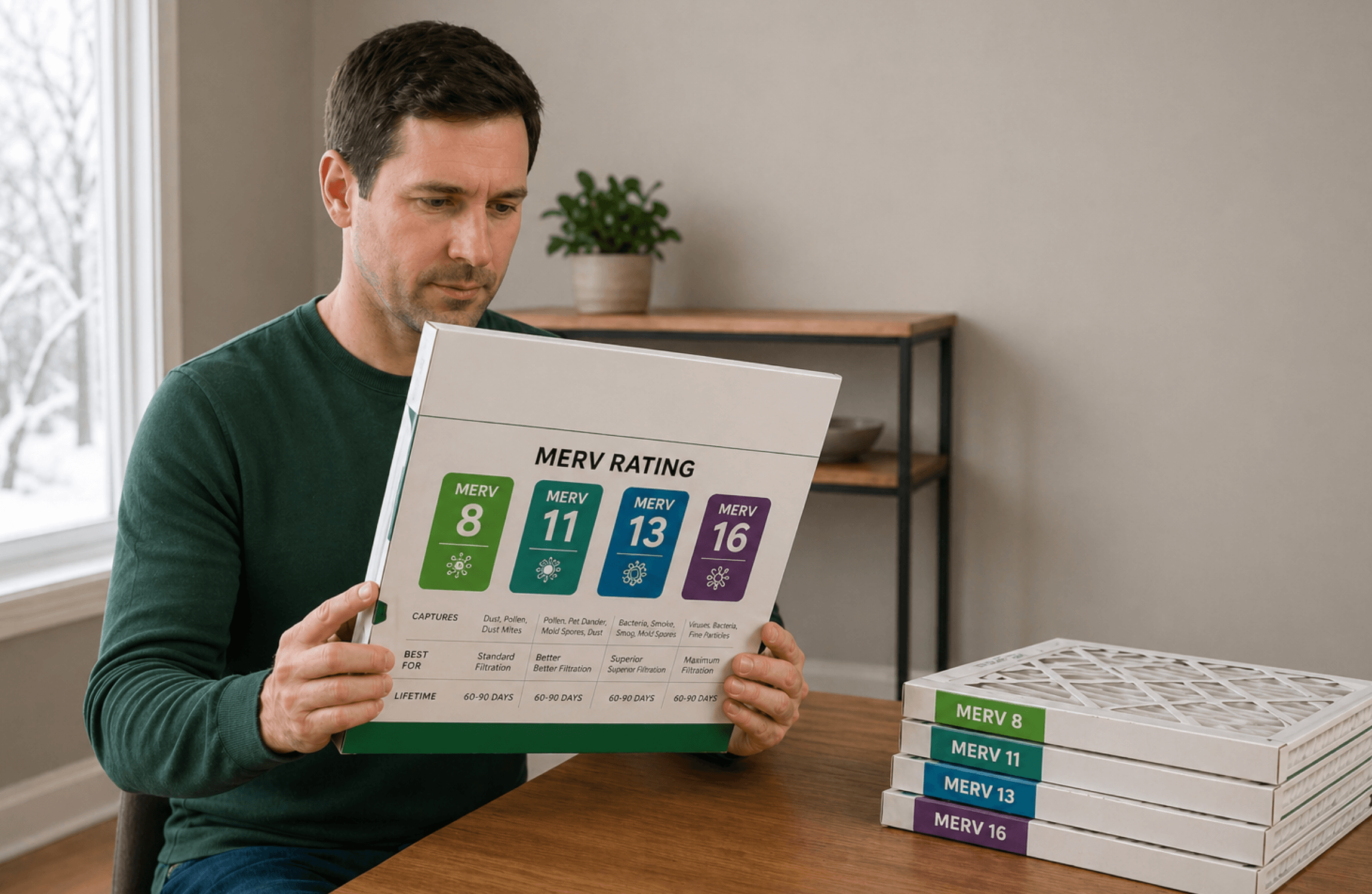 A clogged furnace filter pulls up to 15% off your heating system's efficiency, according to the U.S. Department of Energy. In a sealed-up winter house, that same filter is also the only thing actively cleaning the air your family is breathing 24 hours a day. The MERV rating you pick this October decides how both of those numbers play out through March.